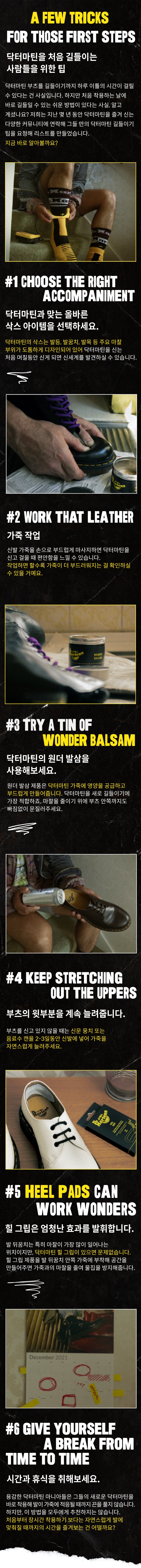 닥터마틴 길들이는 방법은 많은 이들 사이에서 언제나 이슈입니다. 전 세계 많은 닥터마틴 마니아들은 모두 각자만의 길들이는 방법을 가지고 있습니다. 하지만 그 중 어떤