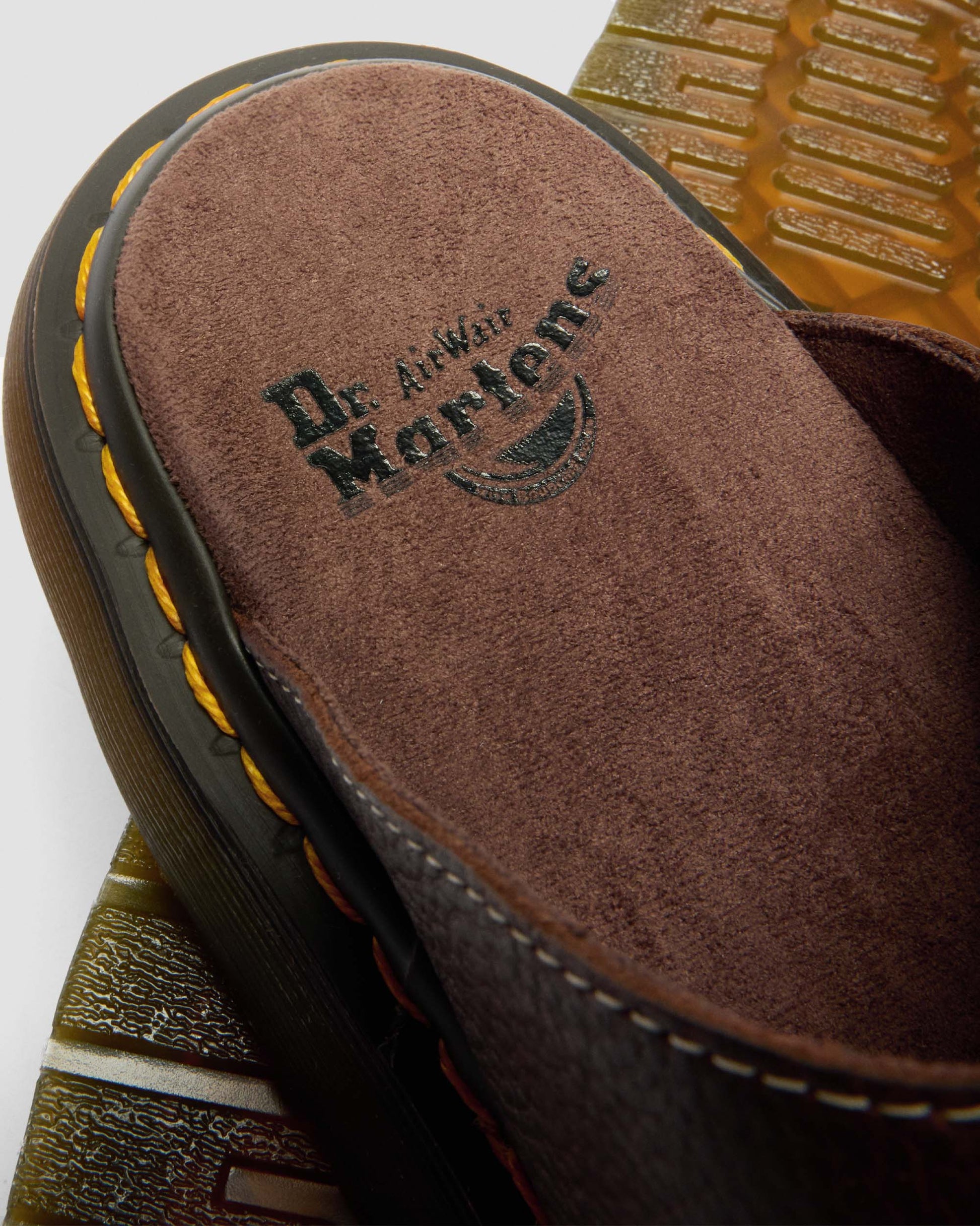 - 안정성이 강화된 넓고 둥근 형태의 쇼어 아웃솔과 닥터마틴의 시그니처 옐로우 웰트 스티치가 적용되었습니다.